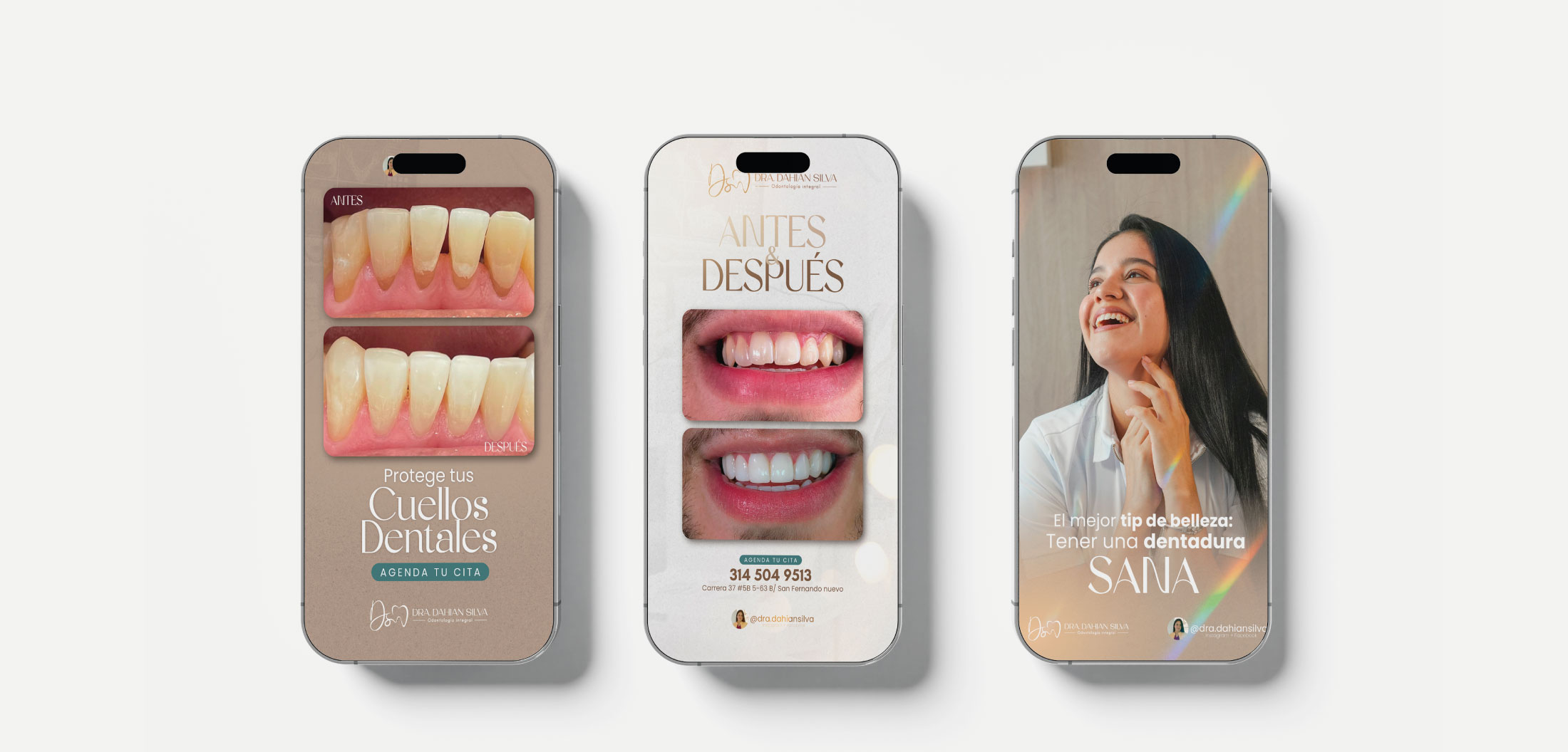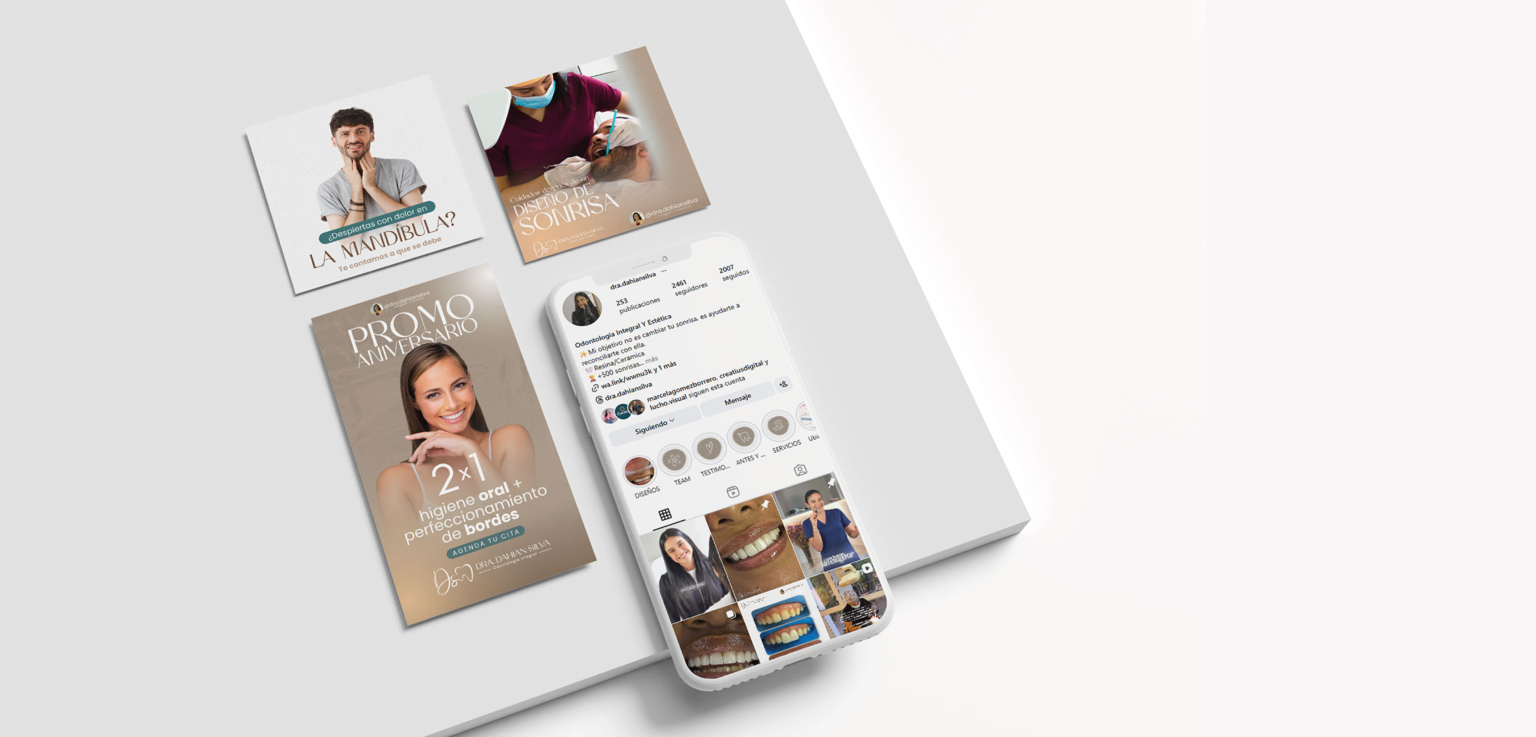Redes sociales enfocadas en mostrar resultados dentales de alta estética a través de métodos mínimamente invasivos.Estas redes sociales deben reflejar los valores humanos de la marca y el gran carisma de la Dra. Dahian Silva.